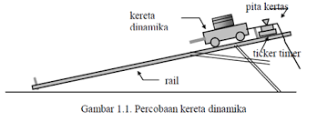 oleh ticker timer pada pita kertas yang ditarik oleh kereta dinamika ini